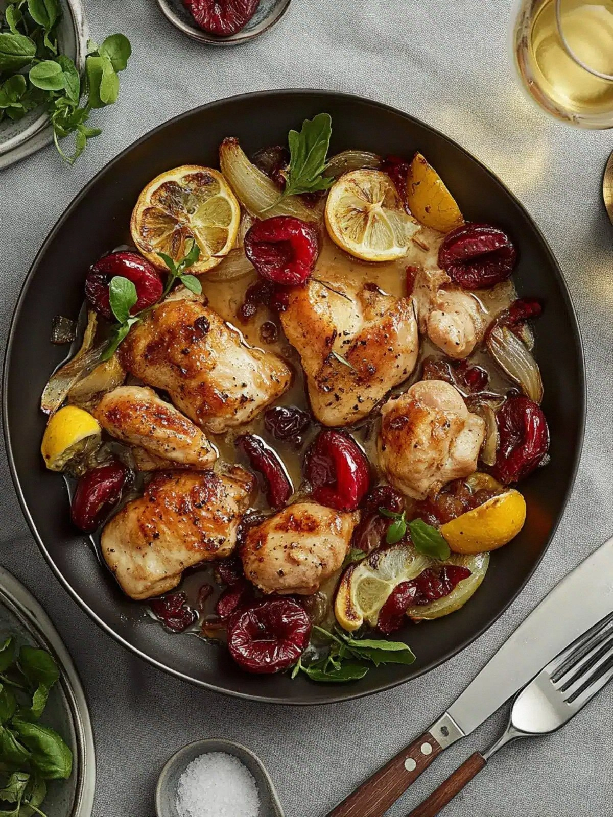 The moment the chicken hit the pan, the air filled with a sizzling chorus that sounded like a jazz trumpet solo. The aroma of caramelized shallots and fresh thyme rose like a fragrant cloud, pulling me into the heart of the dish. I could taste the promise of sweet dates mingling with the subtle bitterness of lemon zest even before the first bite. The texture was a dance of crispy edges that shatter like thin ice and a tender interior that melts on the tongue. I could feel the heat of the skillet against my palm, the gentle hum of the stove, and the rhythmic clink of utensils as the sauce thickened into a glossy, velvet‑like coating.