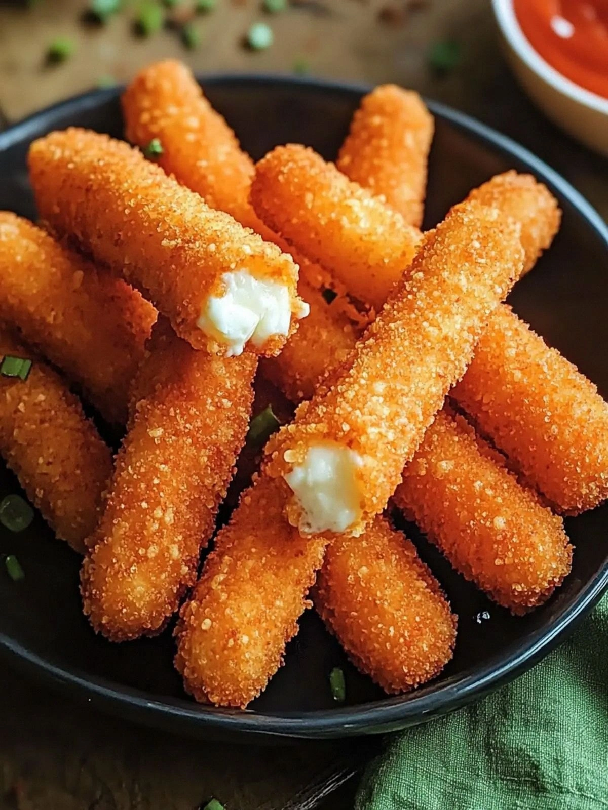 Flamin’ Hot Cheetos are more than just a crunchy snack—they’re a flavor bomb that delivers heat, umami, and that signature buttery crunch. Crushing them finely allows the crumbs to bind to the cheese, creating a uniform coating that holds together during frying. If you skip the Cheetos, you lose the iconic heat and the distinctive orange‑gold crunch that makes these sticks memorable.