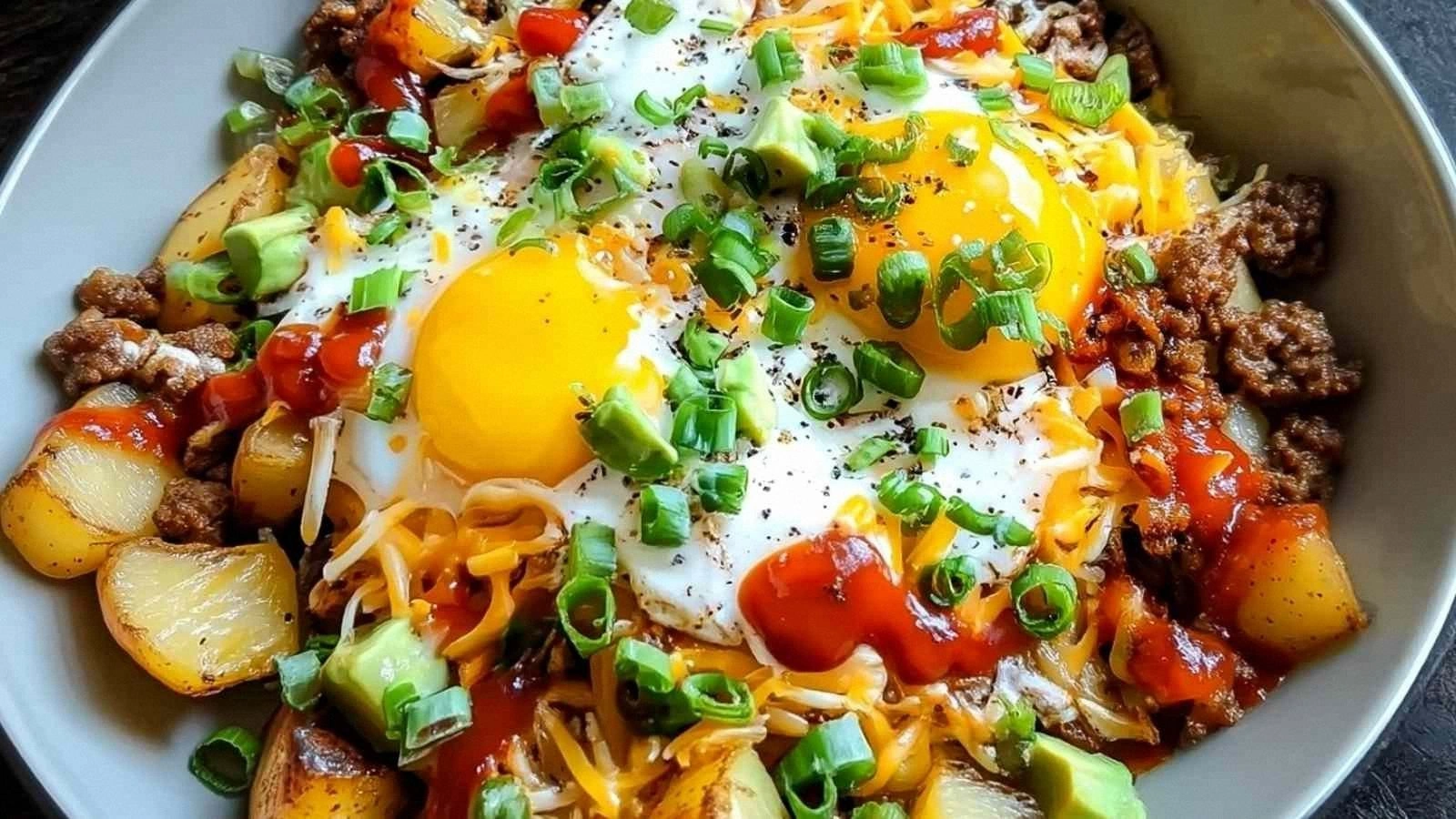 And now the fun part. The moment you add the eggs—scrambled or fried, whichever you prefer—each egg becomes a golden thread that ties the entire dish together. The cheese, when melted, forms a luscious blanket that holds everything in place, while the chives add a fresh, herbal brightness. The final flourish of sliced avocado and a drizzle of hot sauce turns this humble breakfast into a gourmet experience. Trust me, you’ll want to savor every bite and then immediately dig in again.